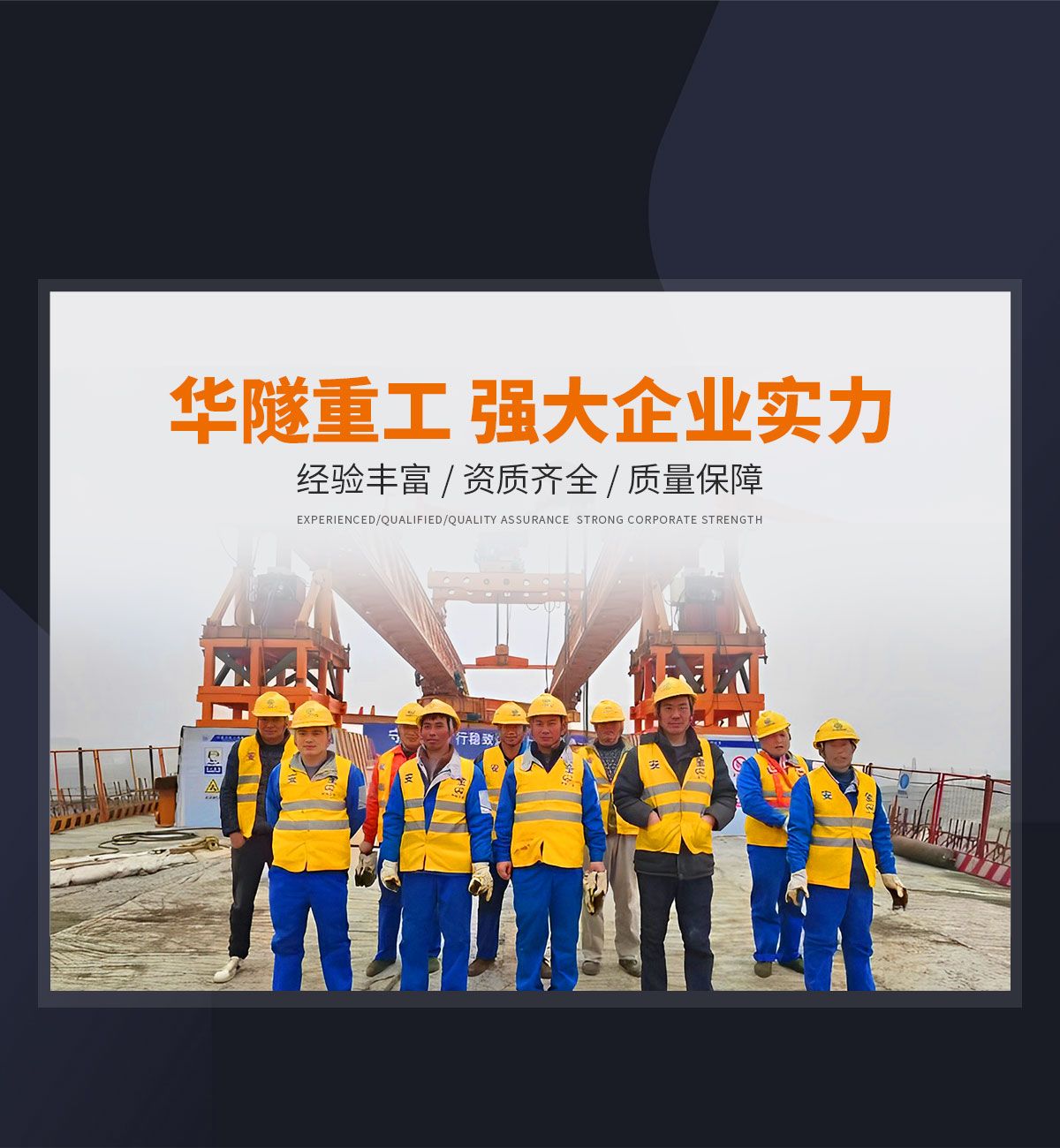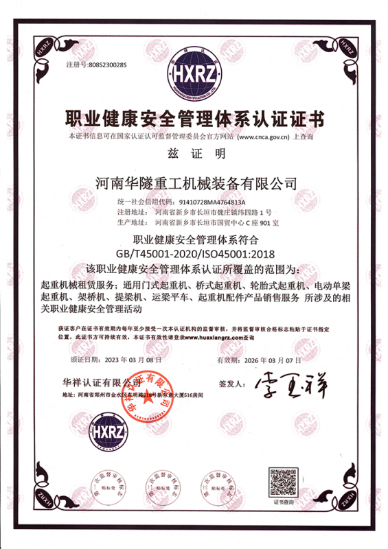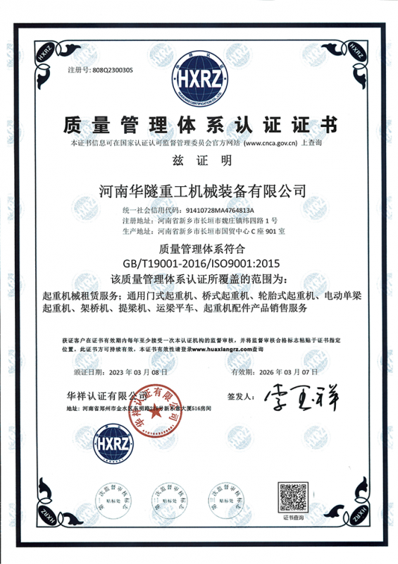河南華隧重工機械裝備有限公司主要從事通用門式起重機、橋式起重機、電動單梁起重機,輪胎式起重機、架橋機、提梁機、遠梁平車、鋼絲繩電動萌蘆、卷揚機、起重配件制造、銷售:起重機械租賃、安裝和維修,起重設備園收,機械設備維修,鋼結構工程承包,橋梁工程及技術咨淘服務,銷售五金制品、機電設備:建設工程監理,建設工程設計,各類工程建設活動,建筑勞務分包,建筑物折除作業,施工作業,工程管理服務,土石方工程施工,裝如發運。  公司已通過IS0國際質量、環境、健康與安全三合一標準認證,特種設備制造許可證和特種設備安裝改造維修許可證。擁有完熟的質量管理體系。嚴格的管理制度,強大的生產能力和先進的檢測手段,在保證產品質量的同時,也具備了極強的市場競爭力?! 」緢猿挚萍紕撔聻槔砟?,產品質量為核心,注重信譽,建立了減信可靠、快捷、思速。便利周到的售后服務網絡?! ∥覀儞碛械募夹g專家和技術服務隊伍為客戶提供充善的售前技術支持和全天候的售后服務體系,讓您無后顧之憂,享受一站式的超值服務?!  叭A隧重工,伴您成功“是華隧重工永遠的宗指,真被的希望與各界朋友攜手并進。共創輝準!
